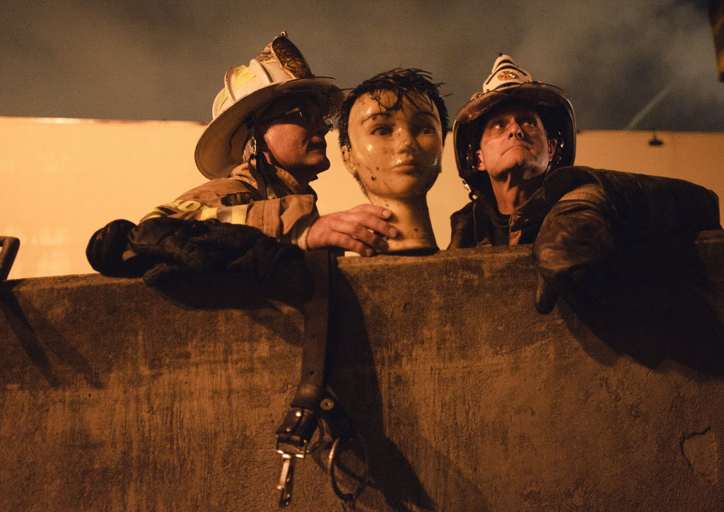 Metro Fire department Asst. Chief Chris Holbrook, left, and Deputy Chief Brian Rice hold a mannequin head found inside a box at a three alarm fire on Sunrise and Greenback in Citrus Heights, Calif., Monday. About 80 firefighters were battling the blaze that had engulfed a store in the suburban Sacramento strip mall. Sacramento Metro Fire Assistant Chief Scott Cockrum says there were no immediate reports of injuries. (AP Photo/The Sacramento Bee, Paul Kitagaki Jr.)