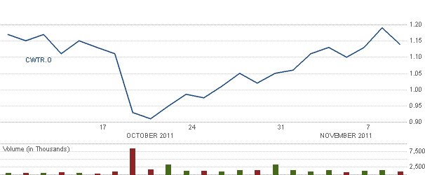 As of market close on Wednesday, Coldwater was trading at $1.14 per share, a slight drop from the day’s high of $1.20.