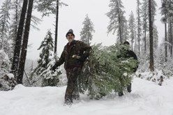 (2010 SR file photo by Jesse Tinsley, of Mark Grant, left, and Jason Kirchner carrying a Christmas tree from the Idaho Panhandle National Forests near Coeur d’Alene)
