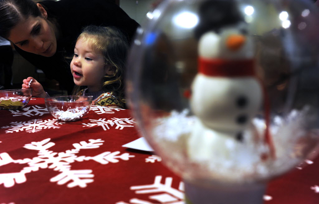 Ella Hummer, 2, with her mother Jessica Hummer, of Coeur d’Alene, punch-out snowflake shapes at the Kroc Center in Coeur d’Alene on Wednesday. The paper snoflakes will be used in an ornament as part of the 2011 National Christmas Tree Lighting Ceremony in Washington, D.C. Alison Boggs’ SR story here. (SR photo: Kathy Plonka)