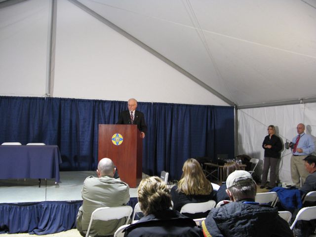 Addressing the media in the chill of the press tent this morning, state Corrections Director Brent Reinke said, “The law requires and justice demands that Mr. Rhoades be held accountable. … Today we carry out the execution order.”
