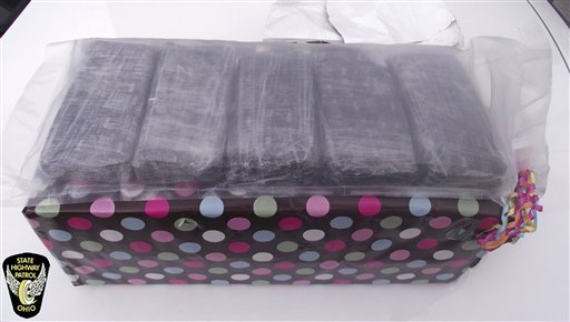 This undated photo provided by the Ohio State Highway Patrol shows a gift-wrapped package containing 25 individually wrapped packets of marijuana.