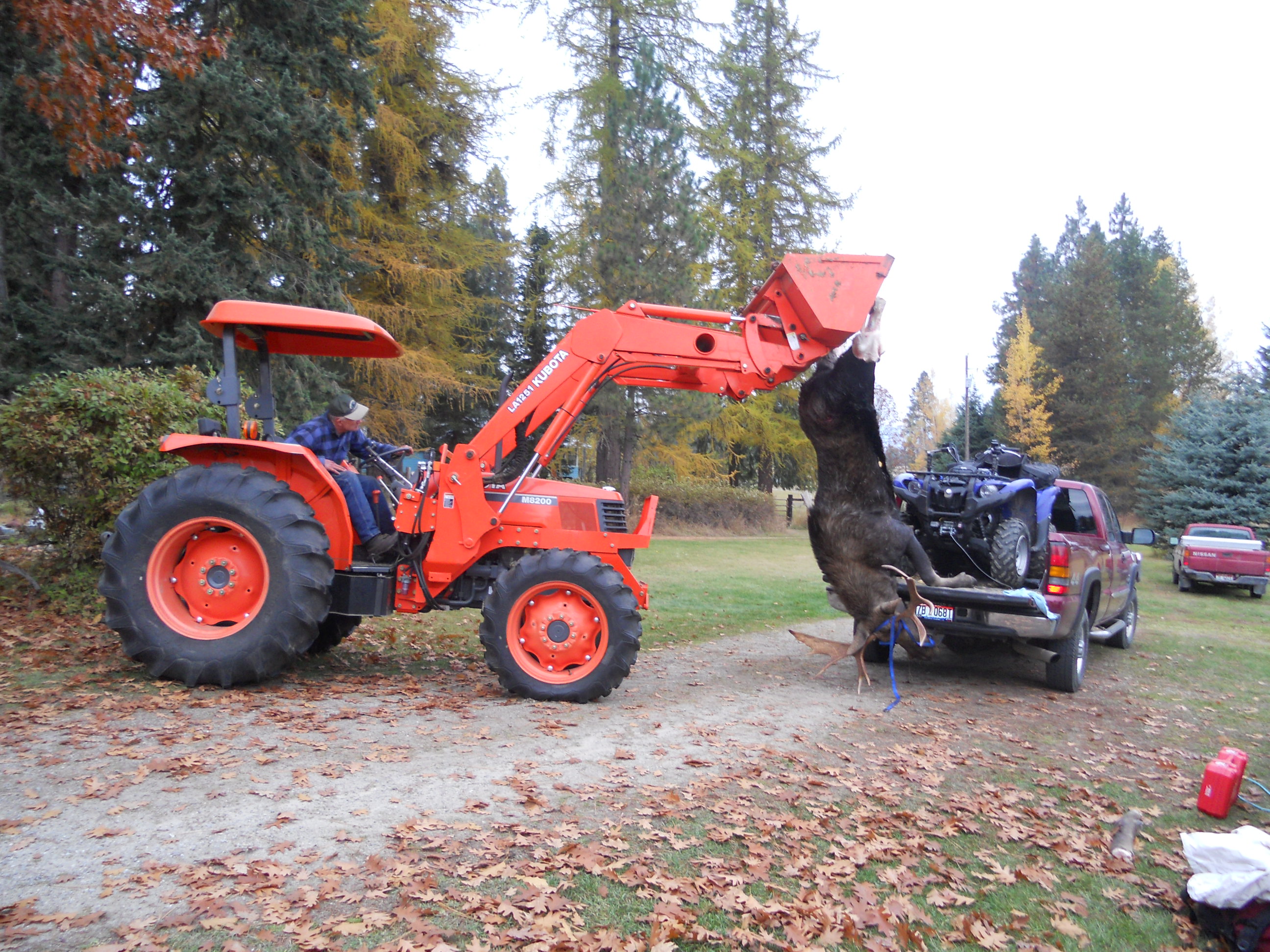 To complete the job, he had a tractor front loader at home to raise the carcass for skinning.
