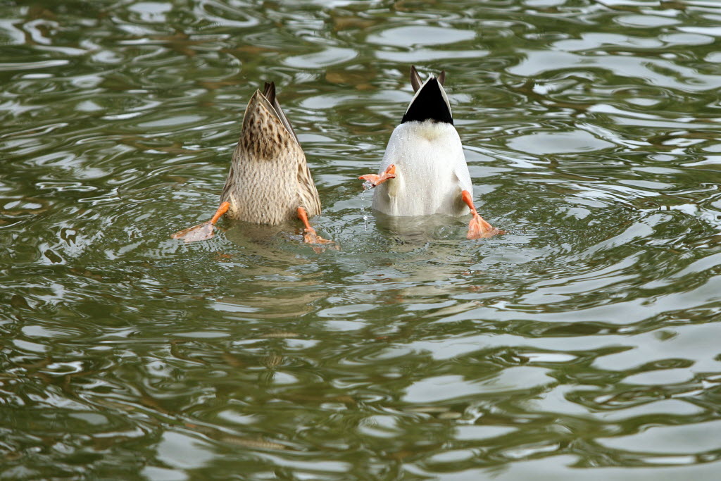 A pair of ducks go bottoms up in the pond on the Civic Center Campus on Tuesday in La Quinta, Calif. You write the cutline. (AP Photo/The Desert Sun, Crystal Chatham)