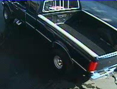 Officer Ebel went to Mega Wash and collected the photos which appear to feature a dark blue or black early-90’s Ford truc