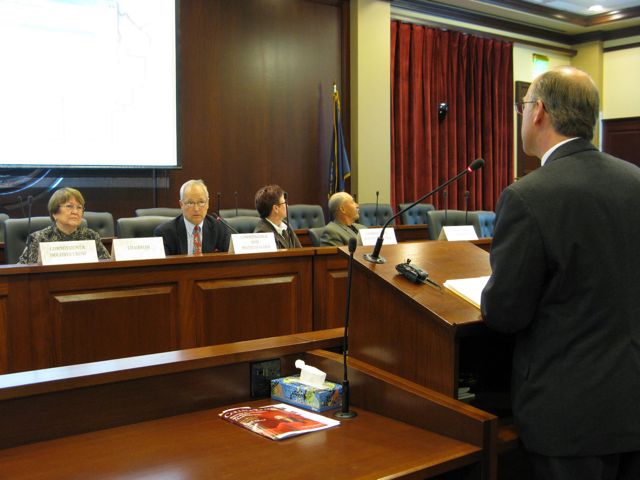 Twin Falls County Prosecutor Grant Loebs told redistricters today, “The last commission ended with a plan that hacked Twin Falls county into four pieces. Well, that’s clearly unconstitutional, because Twin Falls County, based on its size, must be divided, but must be divided only one time. … If you make a third district, that’s clearly unconstitutional.” He said he was up late recently watching the movie “Frankenstein” and thinking about redistricting - Dr. Frankenstein didn’t do a bad job stitching his monster together, Loebs said, but he settled for a damaged brain after dropping it on the floor. “I urge you guys not to settle, to stay in as long as you have to stay in to get it done,” he said, “because this is very important for the whole state of Idaho.”