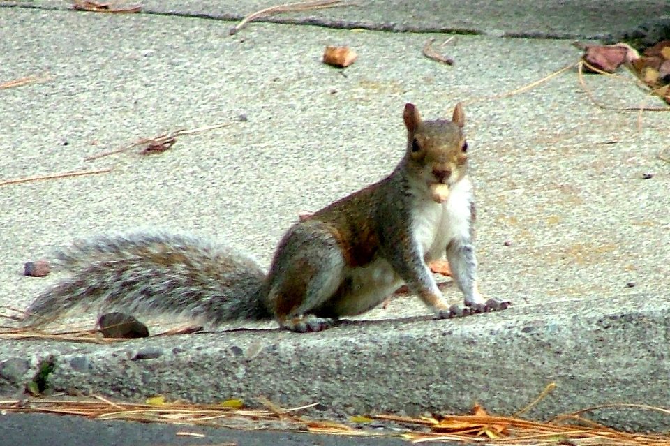 On her Facebook wall , Kerri Thoreson posts this photo of a squirrel packing away nuts for the winter near her Post Falls home, with the comment: “My little squirrel friend showed off his prize quite proudly this morning.”
