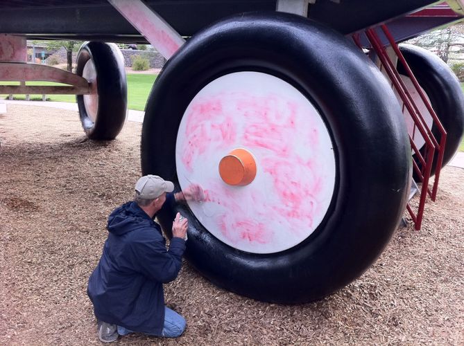 KXLY tweeted this photo of a Spokane city worker cleaning the graffiti from the giant Red Wagon in Riverfront Park this morning. Nicole Hensley KXLY story here.