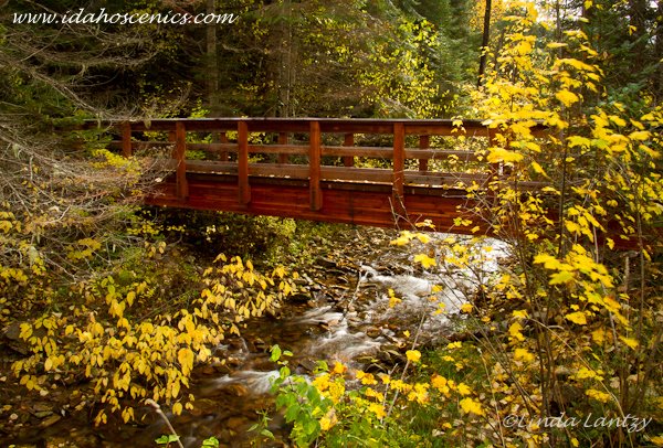 On her Idaho Scenic Images Facebook page, Linda Lantzy calls this scenic: “Prichard gold.” Writes she: “A bridge on USFS Trail 33 in the Coeur d’Alene National Forest crosses a small tributary to the Coeur d’Alene River.”