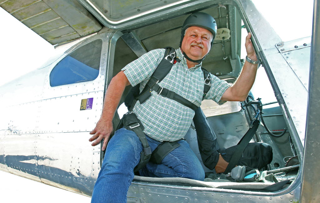 Jerome County Sheriff Doug McFall is shown at Joslin Field, Magic Valley Regional Airport in Twin Falls. McFall is an avid BASE jumper and skydiver, having taken up the hobby while serving as an Army MP at Fort Campbell in Kentucky in the late 1970s. Since then, he’s made 37 skydives and 17 BASE jumps.