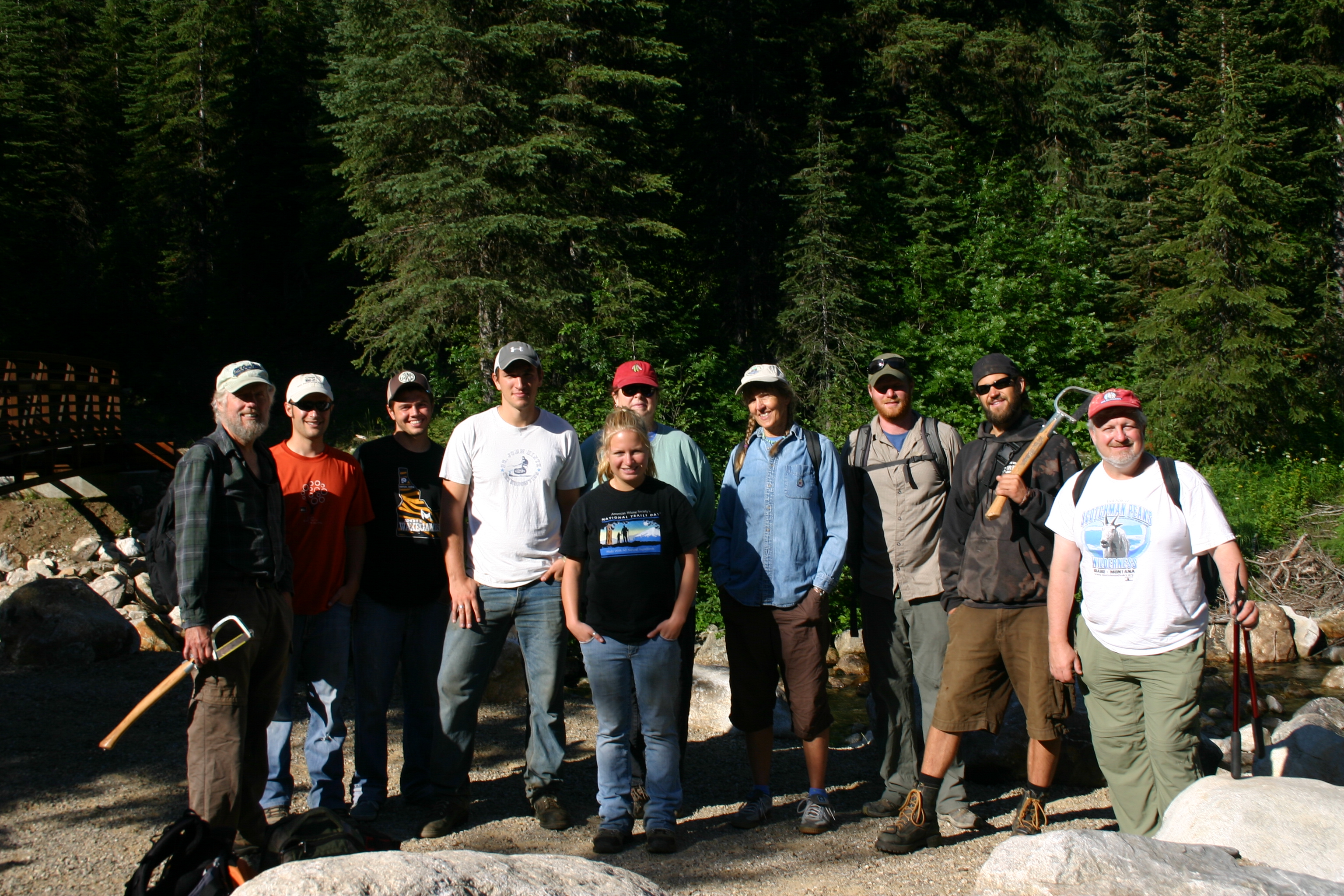 The group camped up the Pack River Road in the Selkirk Mountains and worked under the supervision of three Forest Service trail crew leaders to clear brush from the popular 4.5-mile trail.