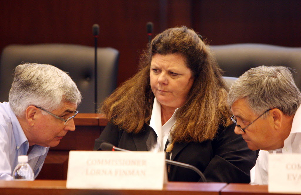 Idaho’s bipartisan citizen redistricting commission Republican members, from left, Lou Esposito, Lorna Finman and Evan Frasure confer in the Idaho Statehouse auditorium during the commission meeting on Tuesday, the final day to come to an agreement on redistricting. See story below. (AP Photo/Idaho Statesman: Joe Jaszewski)