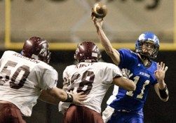 at 8. Billed the Idaho Classic, Lake City and Highland of Pocatello also play California schools. Lake City (2-1) takes on Rio Linda (1-1) at 5. Whitney features two prized players in quarterback Jake Rodrigues (6-3, 209) and tight end Jalen Cope-Fitzpatrick (6-5, 236). Rodrigues has given an oral commitment to Oregon and Cope-Fitzpatrick is headed to USC. Whitney will have to defend a solid quarterback in CdA’s Chad Chalich (pictured last year passing the Viks to the state championship against Centennial), who is ahead of last year’s record-setting pace. He’s thrown for 901 yards, completing 63 of 82 passes (.768) and eight touchdowns/