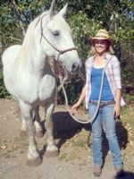 (Courtesy photo: Erin Bolster, a wrangler for Swan Mountain Outfitters near Glacier Park, poses with her horse, Tonk.)