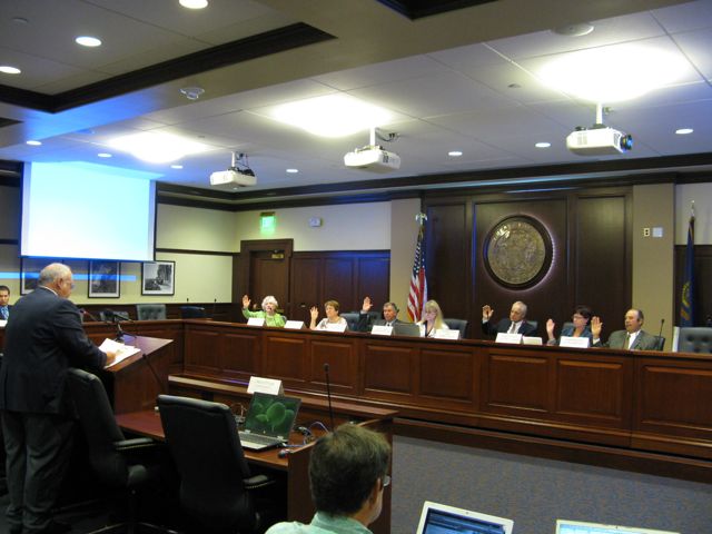 Idaho’s new citizen redistricting commission has been sworn in by Secretary of State Ben Ysursa, who greeted the six new commissioners, saying, “Good morning, all of you, welcome. I facetiously was telling some of you that I thought you were smarter than this, to be on this commission.” He said, “You have a daunting task in front of you. … It may be unfair to you, but time is of the essence. … We need to have a plan in place as quickly as we can, a legally defensible plan. … I commend you for your willingess to serve.”