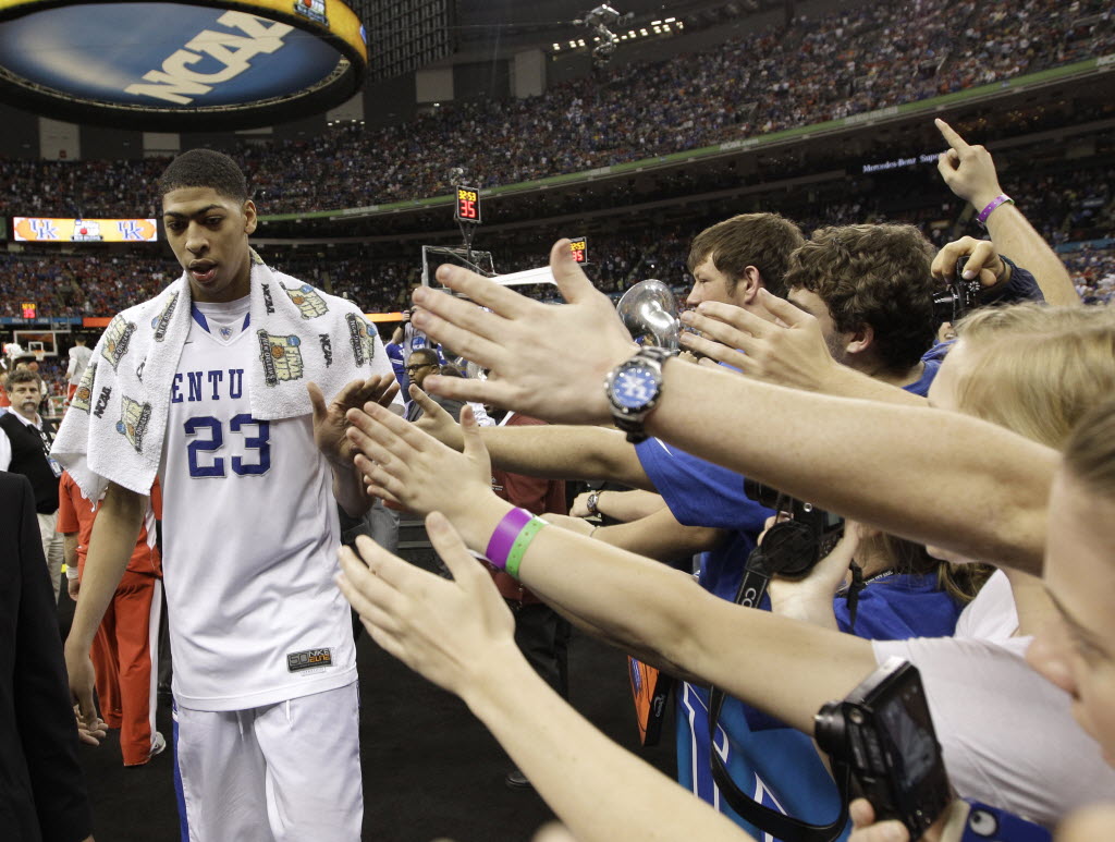 Kentucky Anthony Davis walks off the court after an NCAA Final Four semifinal college basketball tournament game against Louisville Saturday in New Orleans. Davis scored 18 points as Kentucky won 69-61 and now will face Kansas tonight for the national title. (AP Photo/David J. Phillip)