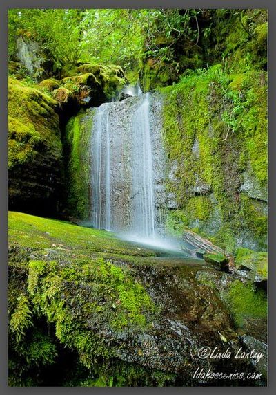 On her Facebook wall , Linda Lantzy/Idaho Scenic Images writes: “This little roadside falls flows in spring and summer on Moon Pass in the St. Joe National Forest. This was August of 2010.”