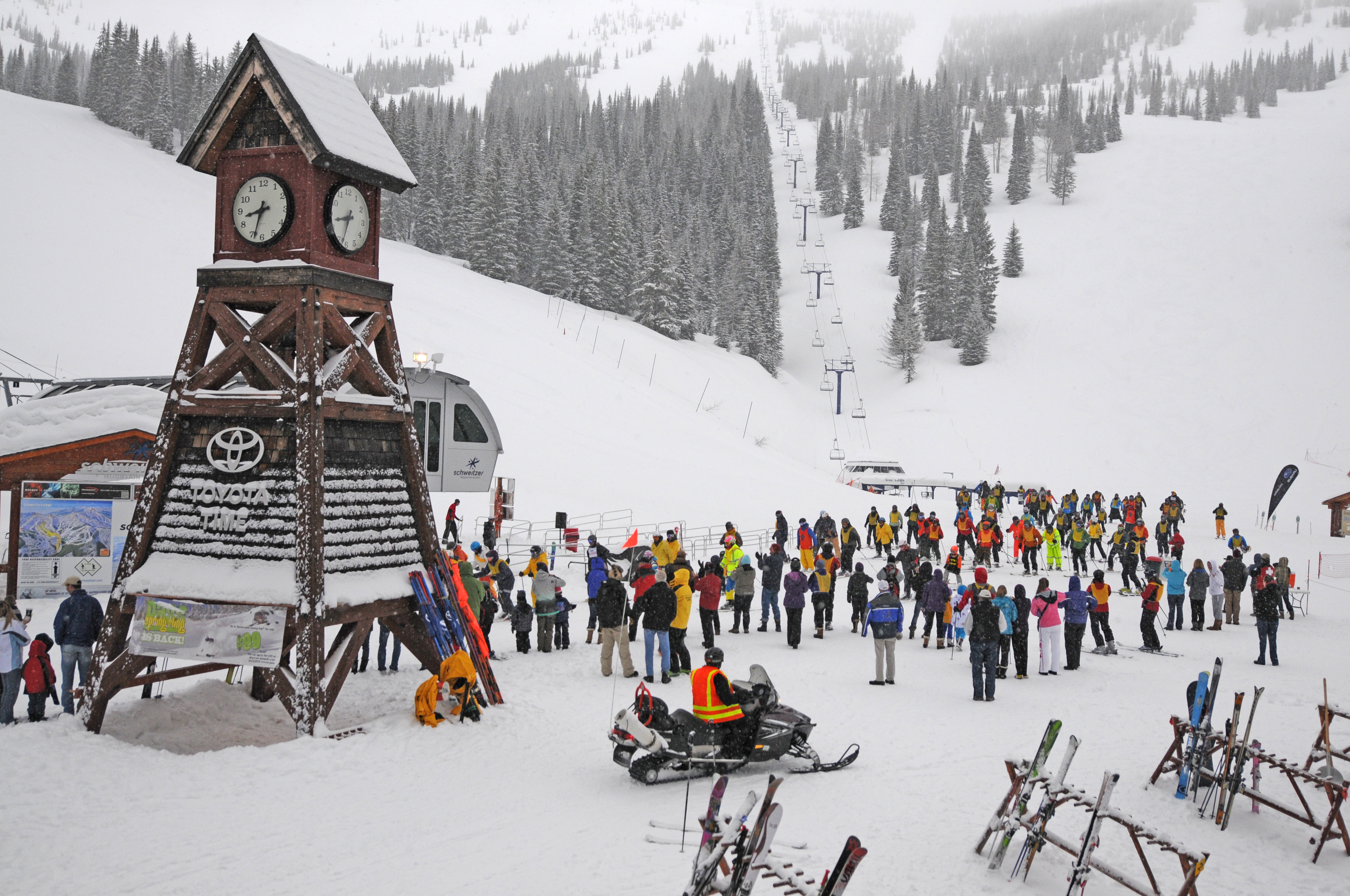 Schweitzer Mountain Resort stayed open all night, with lift operators encouraging participants throughout the evening, ski patrol on stand-by to provide assistance, events crews coordinating rope lines and signage, and employees helping with lodging and meals. More than 40 volunteers helped around the clock with planning, coordination and on-site assistance at the ski event and auction.