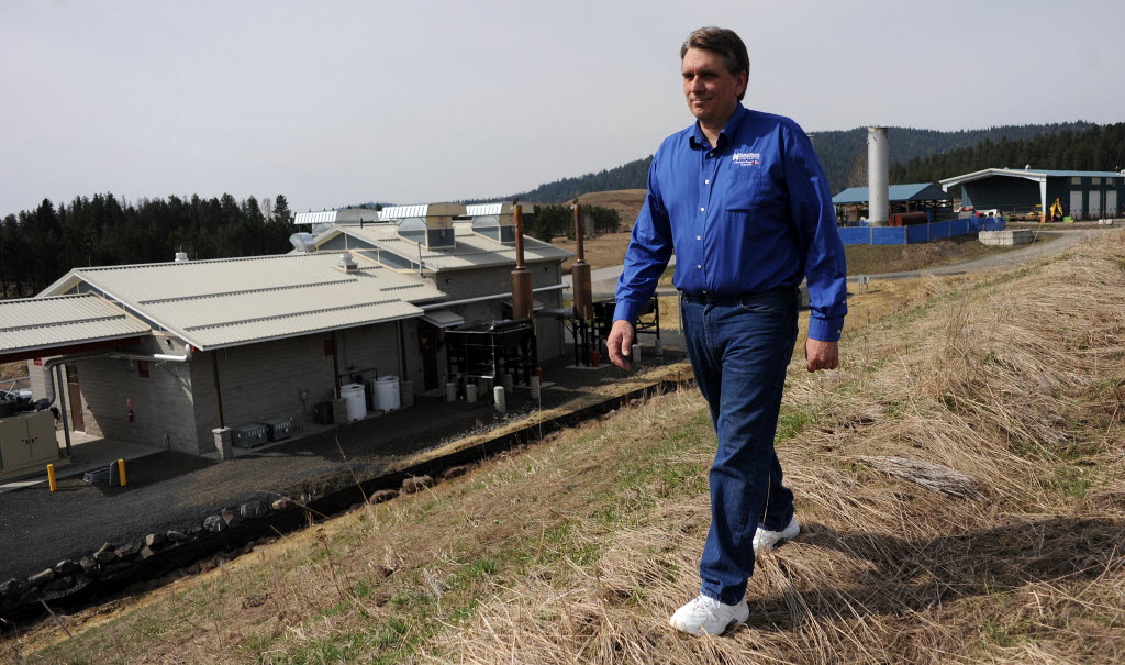 Shawn Dolan, manager of engineering for Kootenai Electric Cooperative, talks about the day-to-day operations of the new gas-to-energy power plant at Fighting Creek landfill south of Coeur d’Alene on Tuesday. Betsy Russell story here. (SR photo: Kathy Plonka)