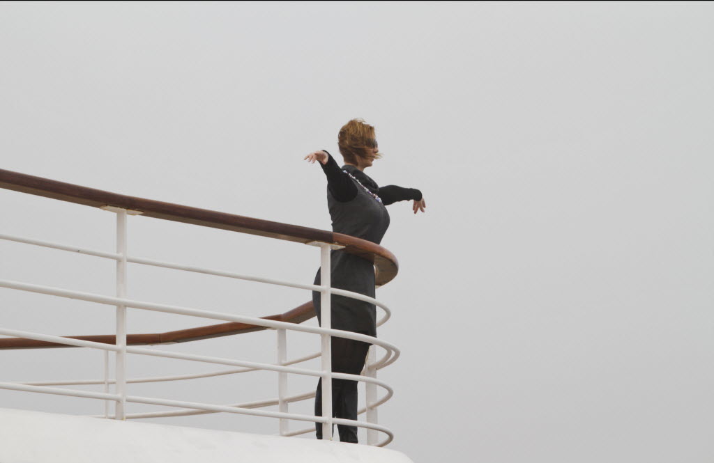 A passenger of the MS Balmoral Titanic memorial cruise ship reenacts the famous pose of actress Kate Winslet from the film ‘Titanic’ aboard the MS Balmoral Titanic memorial cruise ship in the Atlantic Ocean, Thursday, April 12, 2012. Nearly 100 years after the Titanic went down, the cruise with the same number of passengers aboard is setting sail to retrace the ship’s voyage, including a visit to the location where it sank. The Titanic Memorial Cruise departed Sunday from Southampton, England, where the Titanic left on its maiden voyage and the 12-night cruise will commemorate the 100th anniversary of the sinking of the White Star liner. With 1,309 passengers aboard, the MS Balmoral will follow the same route as the Titanic and organizers are trying to recreate the onboard experience minus the disaster from the food to a band playing music from that era. (AP Photo/Lefteris Pitarakis)