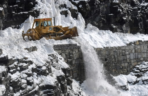 At the same time, plows have begun clearing the roads toward Logan Pass. While motor vehicles are still prohibited, bicyclers and walkers can go progressively farther behind the locked gates as plowing advances.