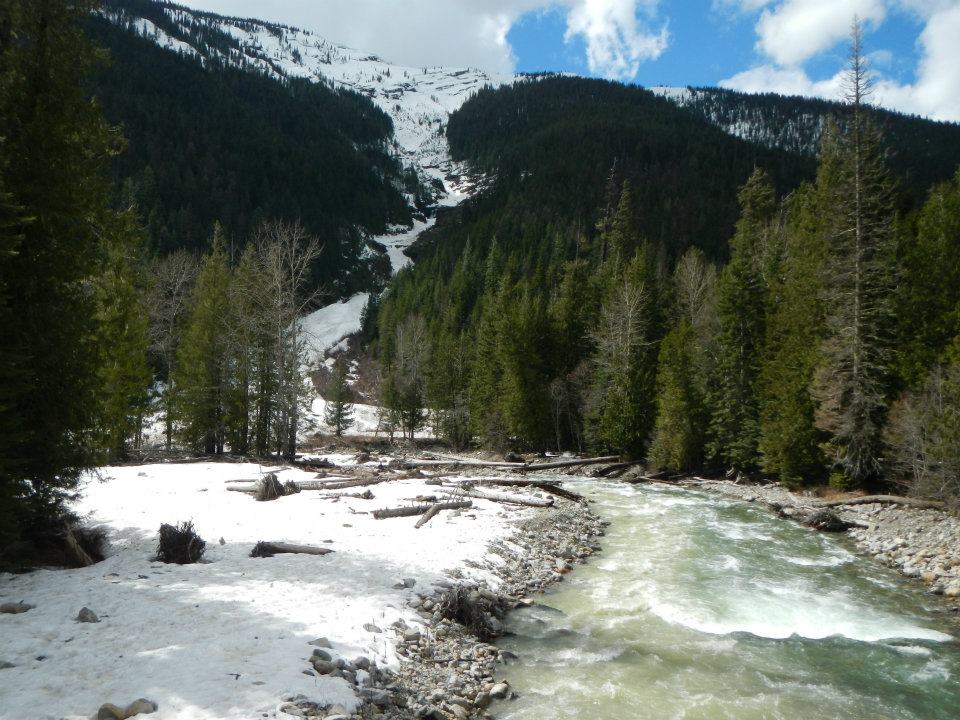 KAYAKING — The chilly scene in the photo above is the feeder creek Todd Hoffman and two other kayakers used today to launch their boats before paddling downstream into Lightning Creek in North Idaho.