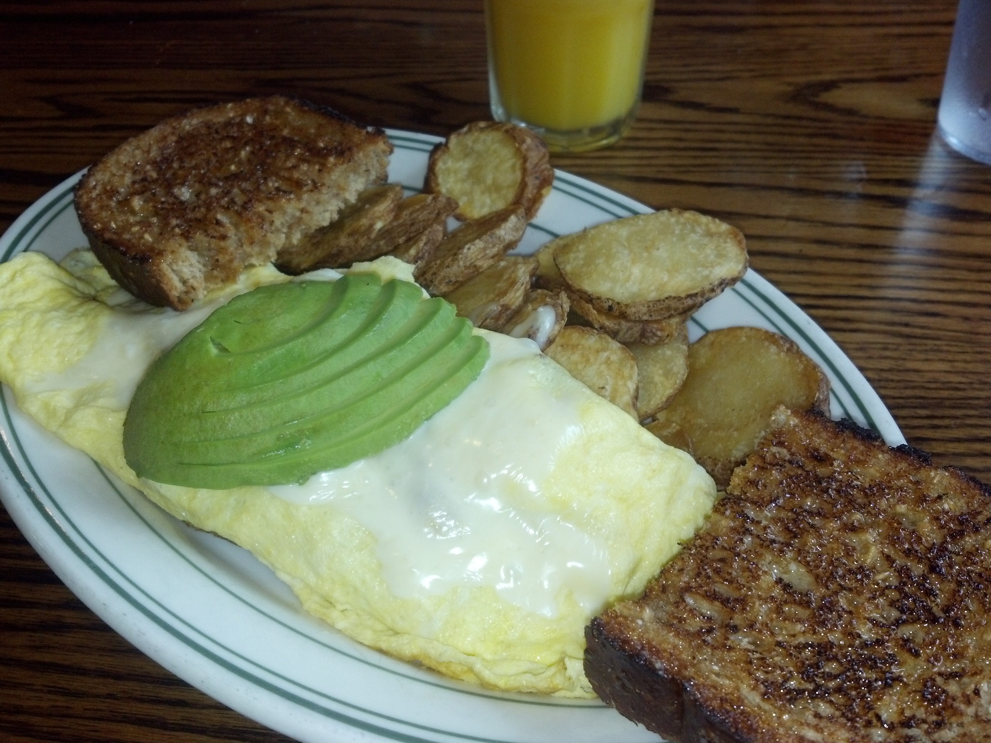 But on this particular day I figured my arteries could use a rest, so I went with the BLAT Omelette, minus the T. Big fluffy eggs, lotsa bacon and cheese, all topped with the respite my ticker so heartily deserves — the aaaaahvacado.