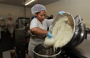 (AP photo: Bertha Domimguez prepares gluten-free dough at Pure Knead bakery sandwich bread in Decatur, Ga.)