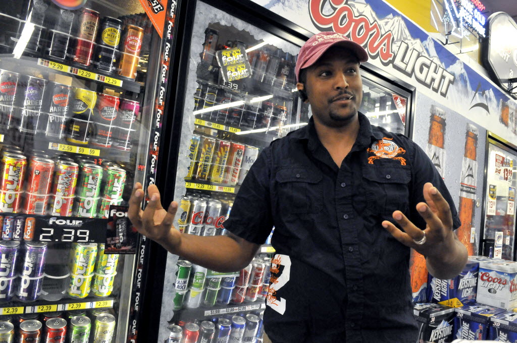 Moe Habte, owner of two HICO stores in Spokane, talks about the proposed alcohol ban in the core of the city Tuesday. Habte feels that banning an arbitrary list of high-test beers is discriminatory because they are the drinks of the poor, unlike high-test microbrews with similar alcohol content. Story here . (SR photo: Jesse Tinsley)