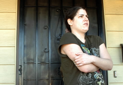 Gypsy Lawson stands on her porch and talks in March 2008 about her federal indictment after authorities accused her of smuggling a rhesus macacque into the U.S. following a trip to Asia. (SRphoto/Jesse Tinsley)