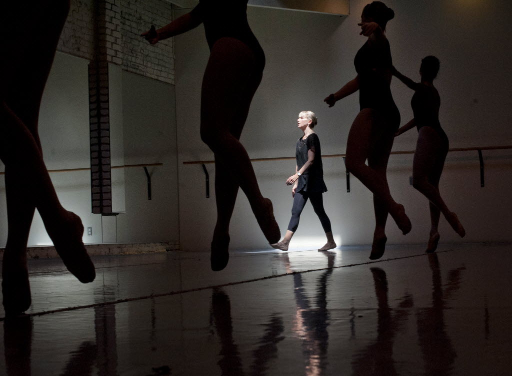 Karen Kraft walks though a shaft of light from a skylight as she instructs ballet dancers on Thursday at Ballet Arts Academy in Spokane. (SR photo: Tyler Tjomsland)