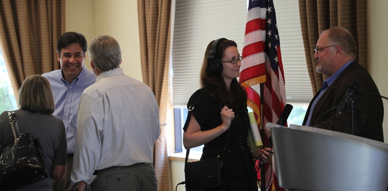 Congressman Raul Labrador speaks to supporters after his speech to the Kootenai County Reagan Republicans at a noon luncheon Templin’s Resort in Post Falls. Meanwhile Jessica Robinson of National Public Radio interviews Jeff Ward, former president of the local Reagan Republicans and current president of the statewide Reagan Republican organization. Raul Labrador will be speaking again this evening at North Idaho College. Huckleberries hears … that NPR (which interviewed Spokesman-Review journalists for a story on online anonymity) are interested in the war among local Republican factions.