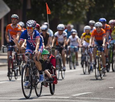 Kristin Armstrong brings her second Olympic gold medal back to Boise Saturday with a “victory ride” from the Boise Depot downtown to Capitol Park for a community celebration. Armstrong won the women’s road time trial. (AP Photo/Idaho Statesman, Darin Osward)