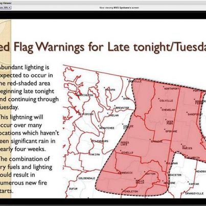The Coeur d’Alene Fire Department is issuing a red flag fire warning on it’s FB Page through today. Dry conditions and abundant lightning justify this Red Flag designation. Keep an eye out for trouble!