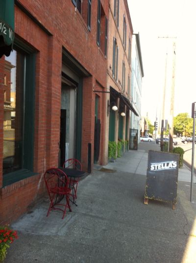 Always on the outlook for a new place to purchase coffee, I headed over just north of the Monroe Street Bridge to Broadway Ave. And there I found Stella’s Cafe. The place has been open since February, but I heard about it just this mornng from a friend who works in the federal building and whose staff members buy their beans ( Doma ) there.