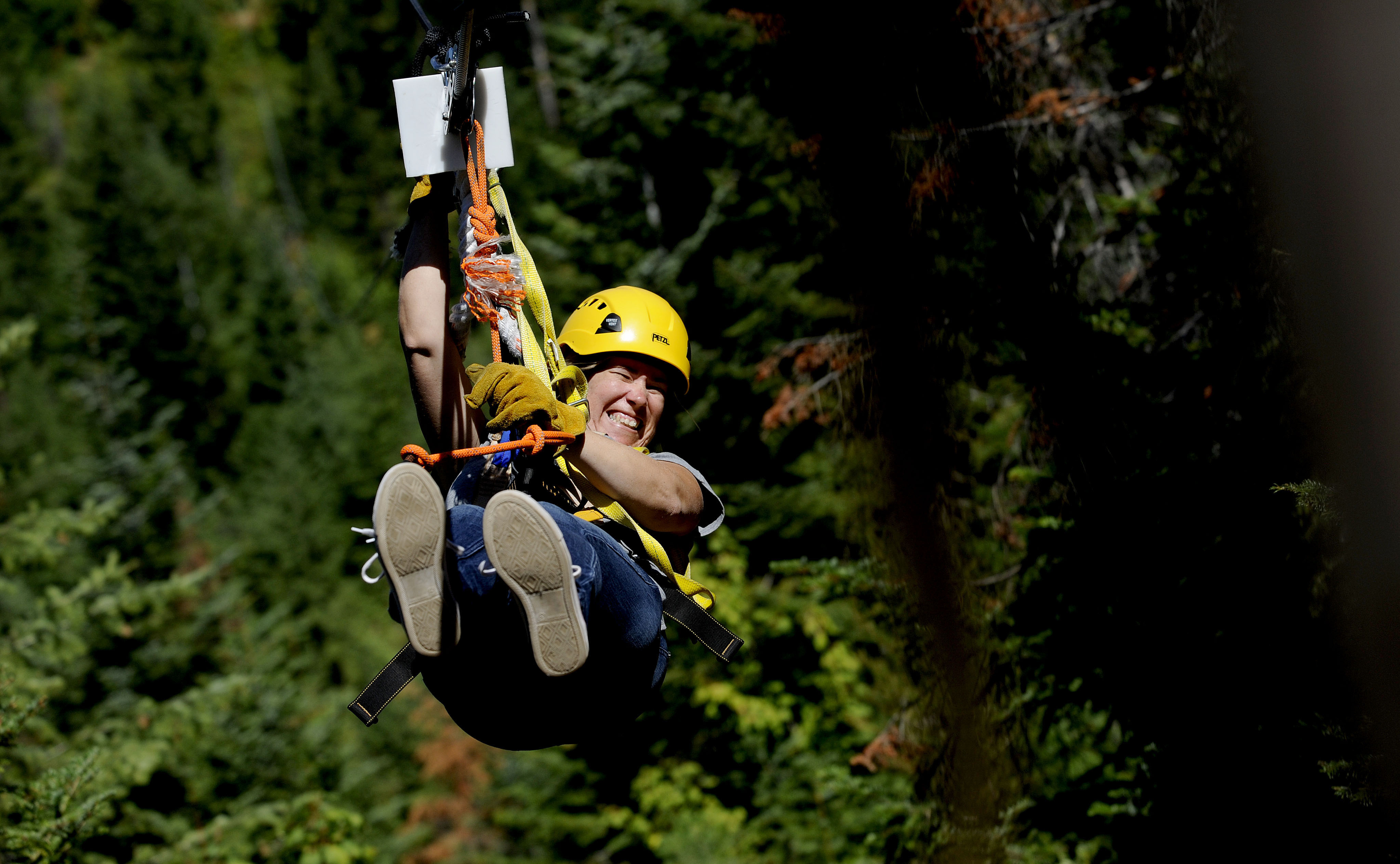 “Oh my God,” said Julia Jakaber, of Otis Orchards, as she zipped through the trees in Wallace on Aug. 16. She and her sisters booked the adventure with Silver Streak Zipline Tours as a birthday present for their father, Ted Wentz .