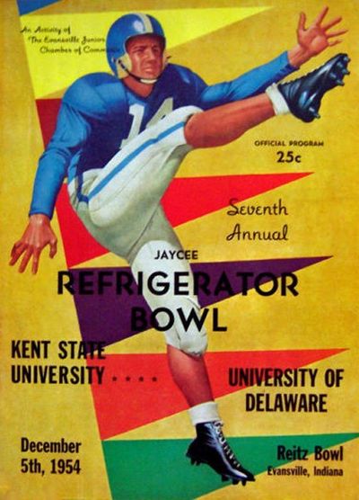 On his Slice blog, Paul Turner provides three program covers from games of college football bowls that no longer exist, including the Refrigerator Bowl (above). Writes Paul: “This program is a graphic nightmare. You can barely read ‘Refrigerator Bowl.’” Have you ever attended a college football bowl game?