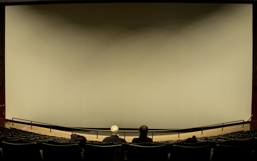 A pair of movie goers who asked to not be identified wait for the start of an IMAX film in an empty theater on Sunday at IMAX in Riverfront Park in Spokane. Falling attendance may mean the once popular theater may close in the months ahead. Jonathan Brunt’s SR story here. (SR photo: Tyler Tjomsland)