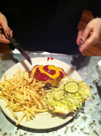 Yeah, my wife likes her ketchup and mustard. Especially on her burgers. That photo above is of the burget she ordered Tuesday night at the Steelhead Bar & Grille . Forget the fact that the patty had onions in it, which she didn’t care for. It sure looked nice.
