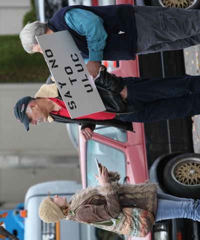 Brent Regan (middle), one of three applicants for a Coeur d’Alene School Board vacancy, is interviewed by a Coeur d’Alene Press reporter during a demonstration by United Conservatives of North Idaho near the Kootenai County Courthouse earlier this fall.