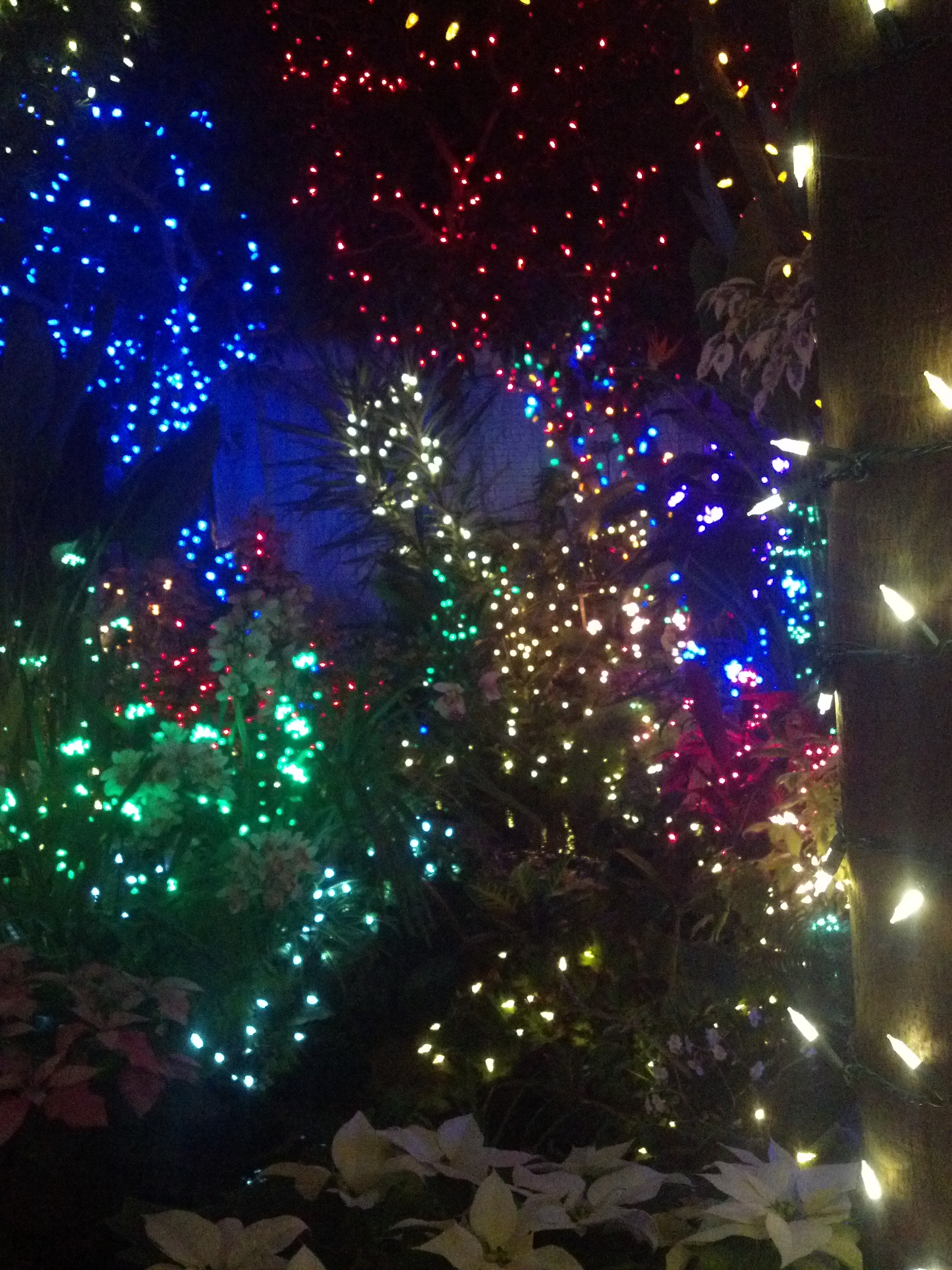 The Holiday Lights at the Gaiser Conservatory in Manito Park offers the best of both worlds. Frozen ground and frosty trees on the outside,tropical flora festooned with thousands of Christmas lights on the inside.