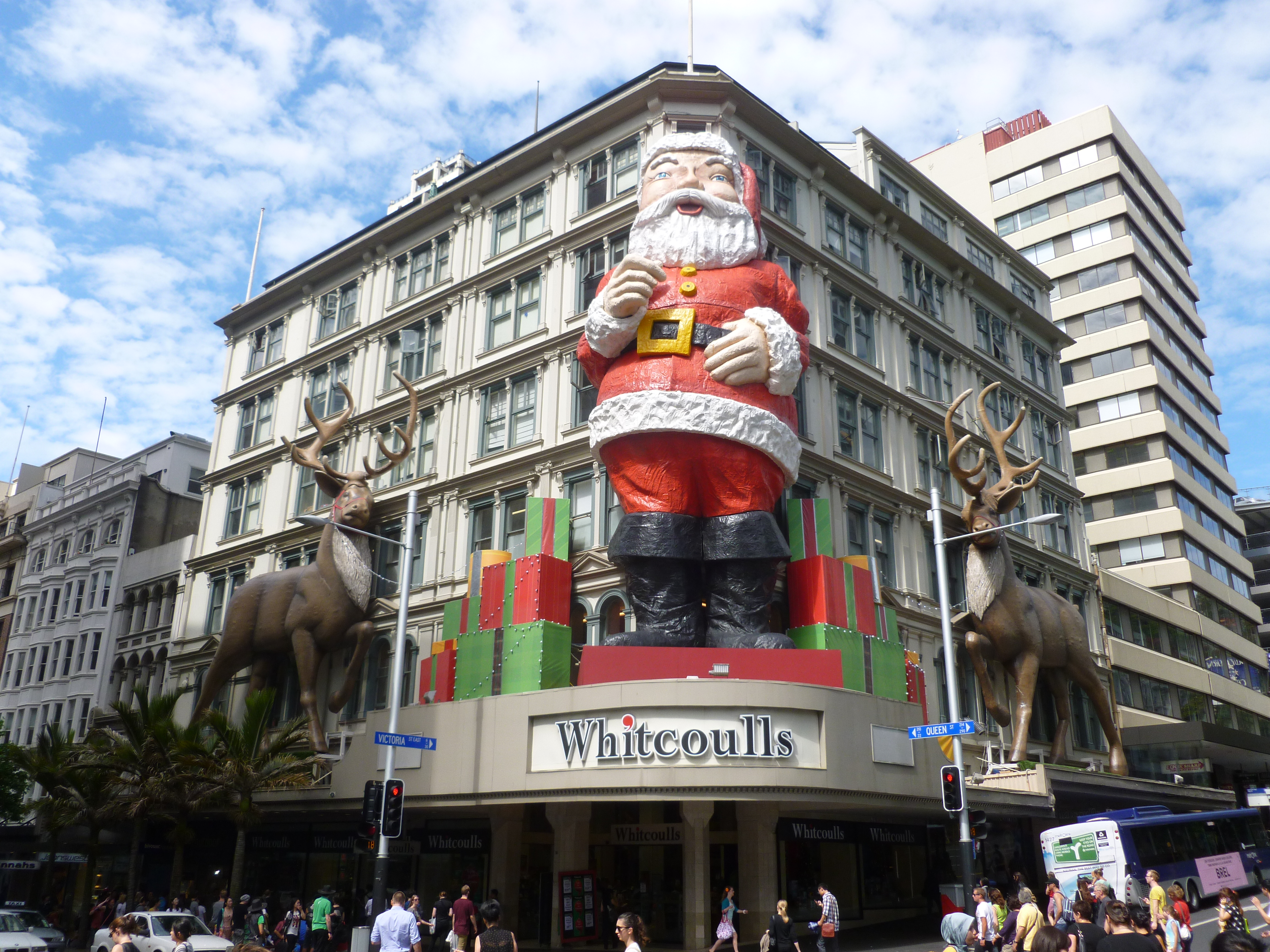 Whitcoulls is, as it claims, “one of New Zealand’s favorite bookstores.” But one of the store’s biggest holiday features comes during Christmas, which is usually sunny and warm (December being the middle of the island nation’s summer), when the store brings out its giant Santa. People line the city’s sidewalks, mostly on busy Queen Street, and click photos of the big bearded guy. During the day we spent in Auckland, I was no different.