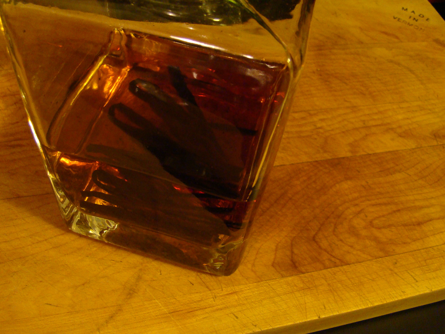 Strain the spices out when your rum is ready. I added the vanilla pods back into the bottle to continue infusing. The vanilla also adds color to the rum, so don’t be surprised when your rum darkens as it sits.