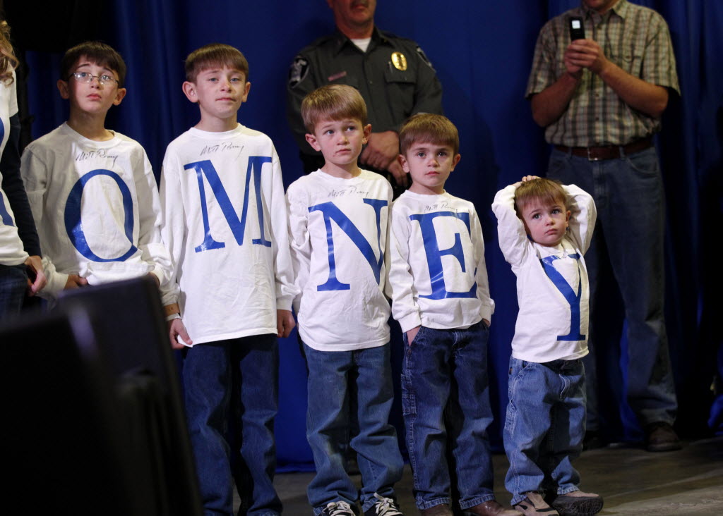 Members of the Fischer family listen as Republican presidential candidate, former Massachusetts Gov. Mitt Romney, speaks at a campaign rally in Elko, Nev., Friday. (AP Photo/Gerald Herbert)