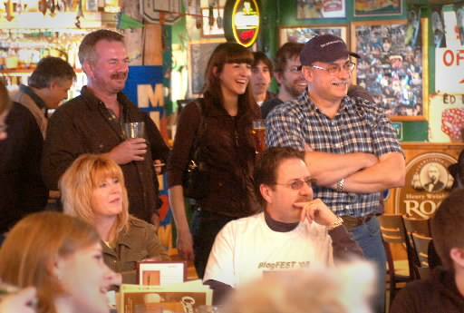 Question: How many of the faces above from a Blogfest Past at Capone’s can you name? And can you guess what we’re watching?