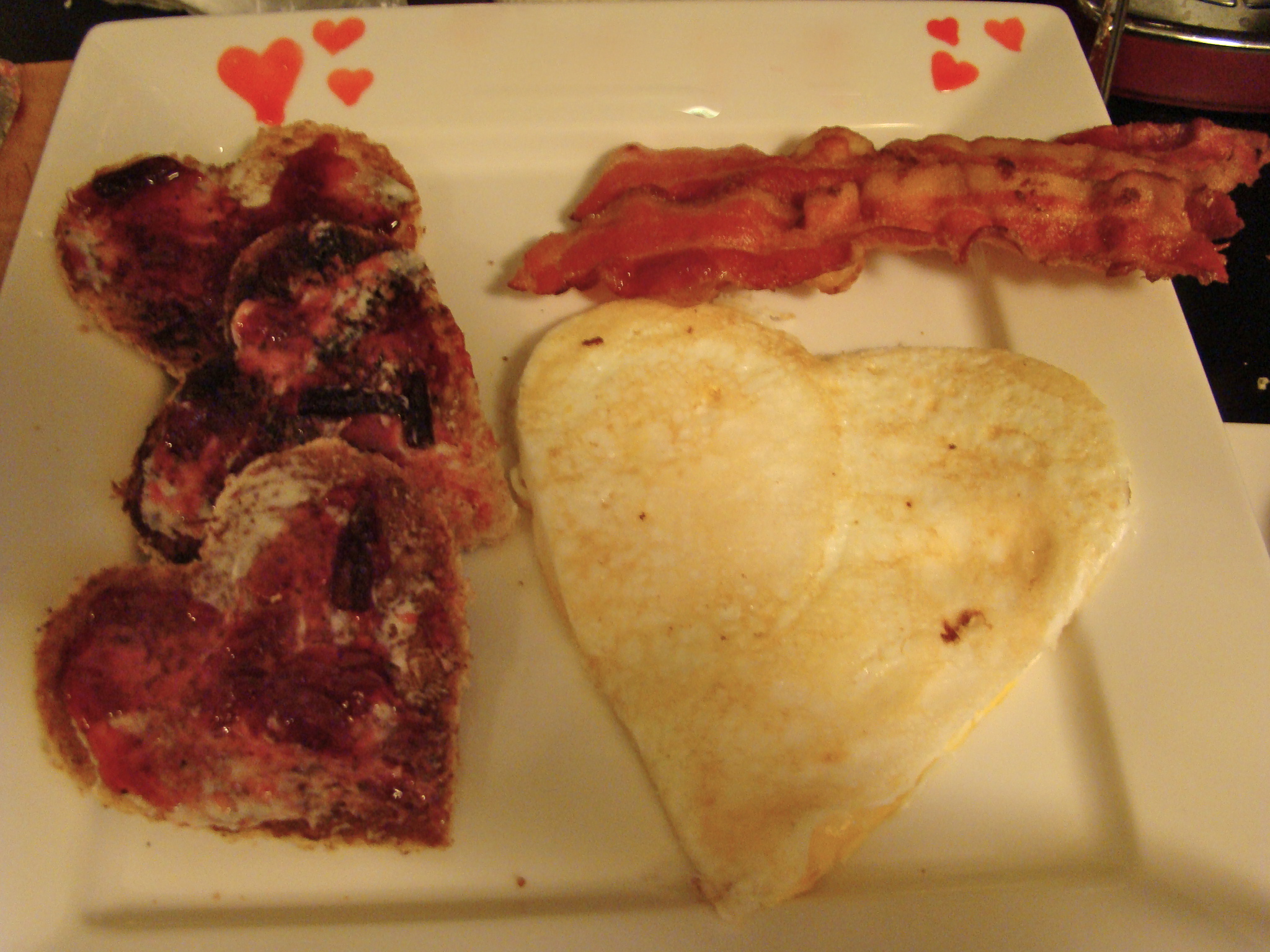 - When it is done, pull the egg off the heat (you may need to use the cookie cutter to trim the shape a bit—do this on the cutting board so you don’t scratch the pan) and add it to the plate with a few slices of bacon. Serve with a glass of orange juice. If you’re me, you’ll realize you forgot to make coffee at this point—this is not recommended. In fact, start the coffee up there in step one and have a cup as you pull together the meal.