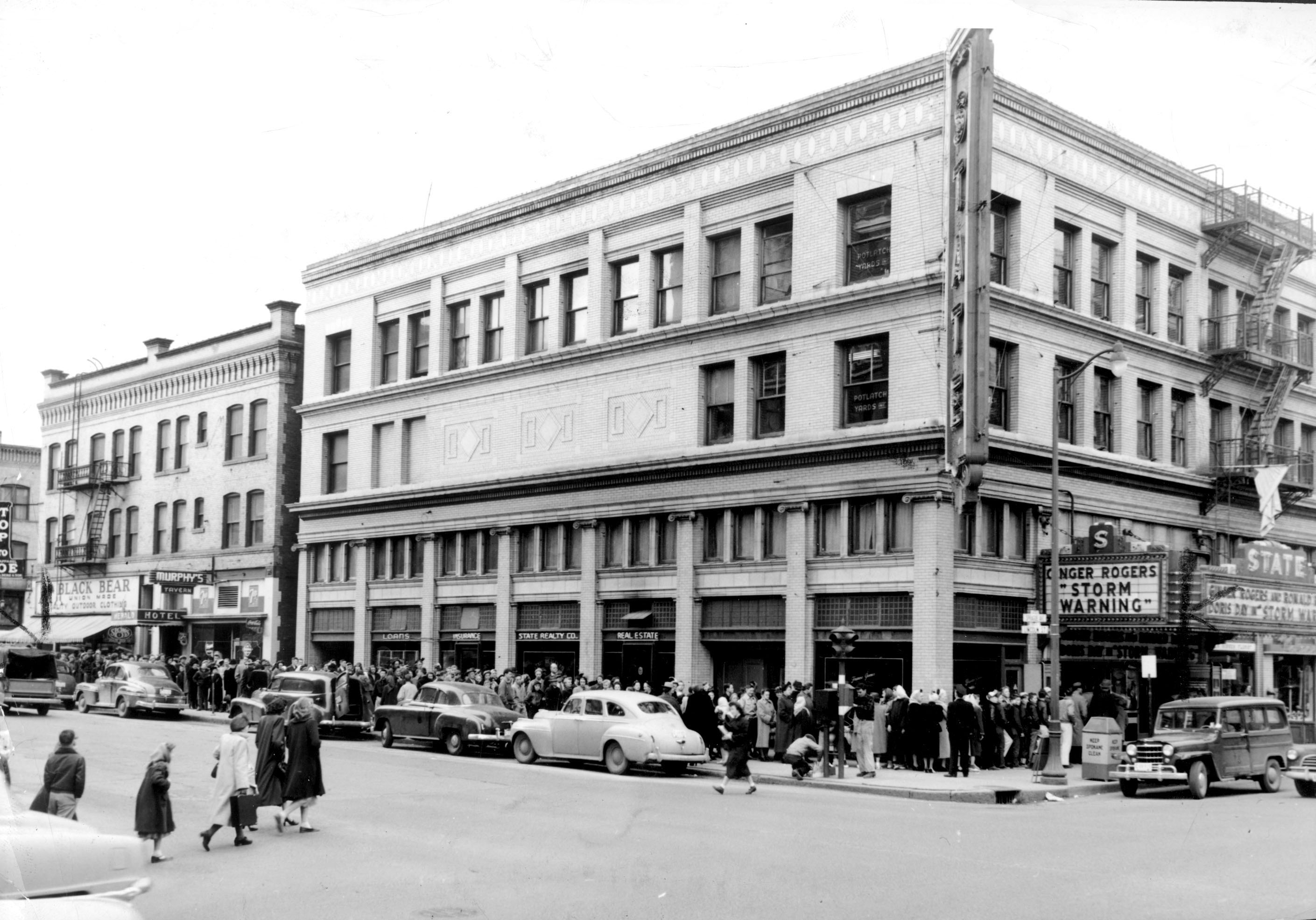 Here’s a 1951 photo that shows what the building, at the corner of Lincoln and Sprague, looked like. At the time, it was the State Theater, having gone through a few changes after starting life in 1915 as the Clemmer.