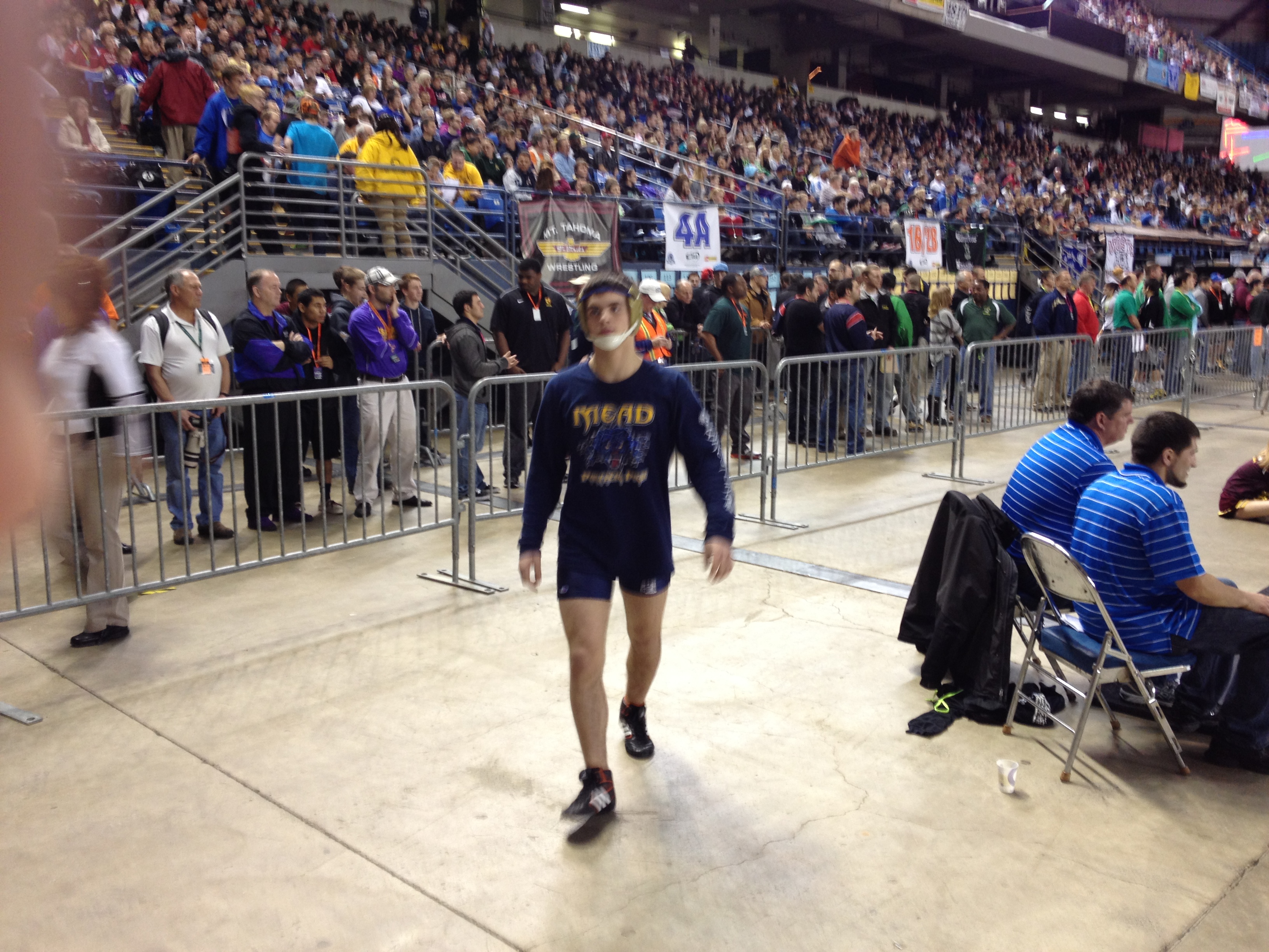 In the photo I snapped above, Chandler Rogers of Mead paces before his State 4A quarterfinal match Friday evening at the Tacoma Dome.