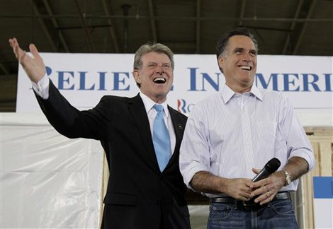Idaho Gov. Butch Otter introduced GOP presidential candidate Mitt Romney at Romney’s Boise campaign rally this afternoon. “Folks, this election is about your and my liberty,” Otter said. “We will turn out for that Idaho caucus. … We will turn out for the man that has the executive experience, understands that we are a free market, not a socialist country, that has been there and done that”/ Betsy Russell , Eye On Boise. More here.