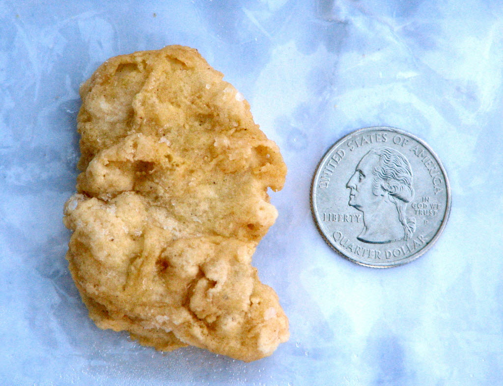 Rebekah Speights of Dakota City is auctioning this McDonald’s Chicken McNugget, which she believes looks like President George Washington, on eBay to raise money for a church summer camp. The nugget is shown in this photo. (AP Photo/Sioux City Journal, Nathan Robson)